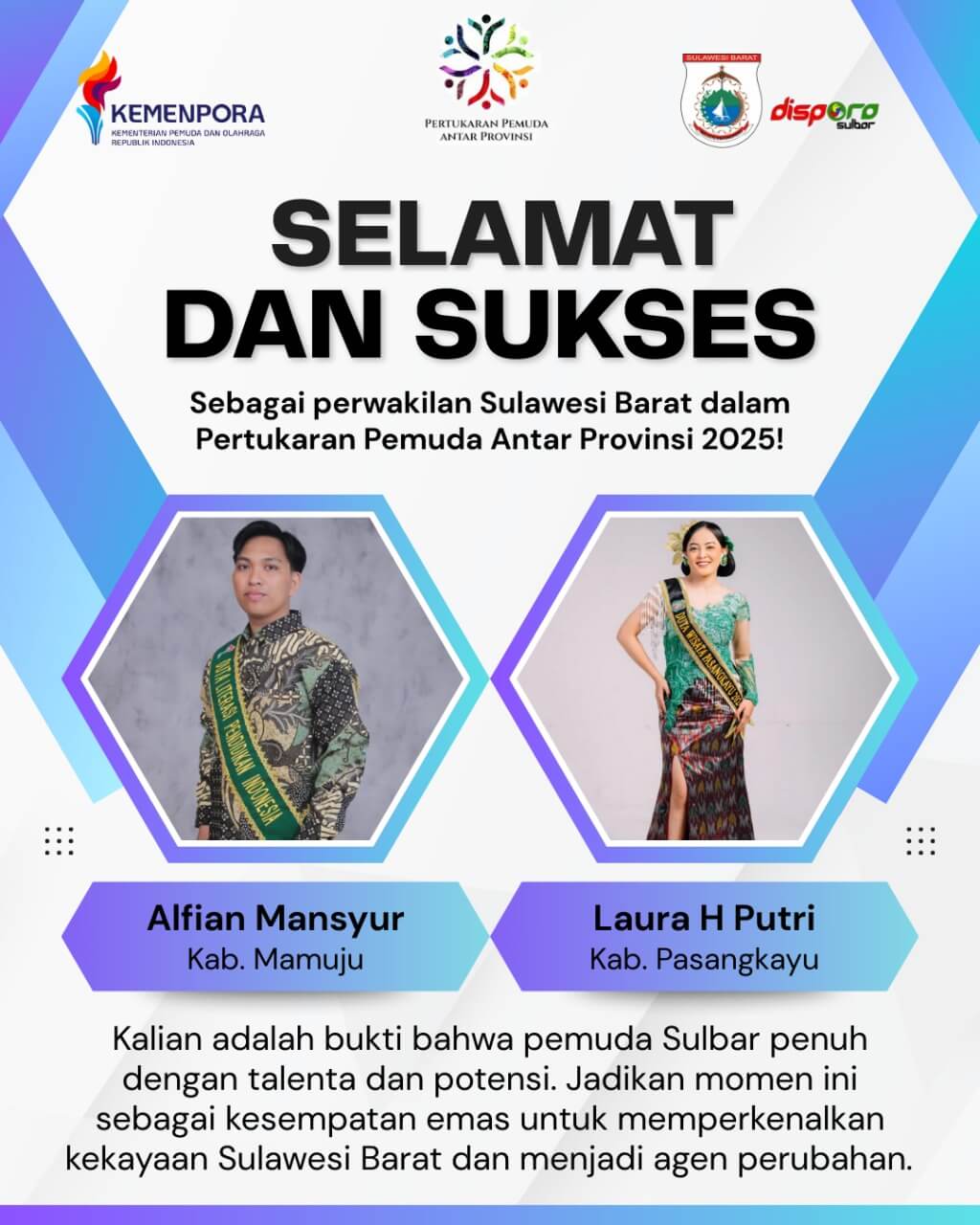 Seperti diketahui, mereka berdua berhasil bersaing dengan ratusan peserta dari seluruh Indonesia dan terpilih sebagai bagian dari puluhan pemuda yang akan mengikuti program pertukaran ke provinsi lain untuk memperkenalkan budaya dan potensi Sulbar di pentas nasional