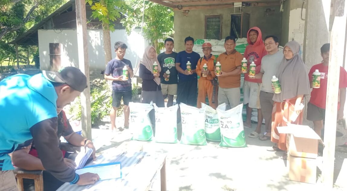 Selain itu, juga menyalurkan pupuk organik cair Bio Erekta berjumlah 220 liter dan NPK Mutiara 100 Kg.
