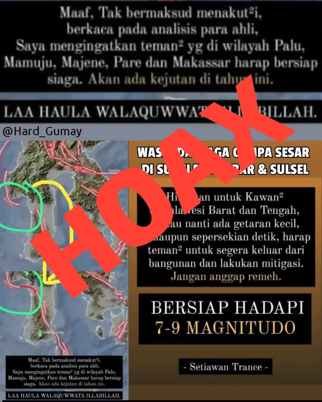 Mamuju — Badan Penanggulangan Bencana Daerah (BPBD) Provinsi Sulawesi Barat (Sulbar) telah berkoordinasi dengan BMKG gowa dan menegaskan bahwa informasi yang beredar di masyarakat mengenai akan terjadinya gempa bumi dan tsunami di wilayah Sulbar adalah hoaks dan tidak dapat dipertanggungjawabkan kebenarannya, peristiwa gempa bumi hingga saat ini belum dapat diprediksi oleh siapapun kapan, di mana, dan berapa kekuatannya.