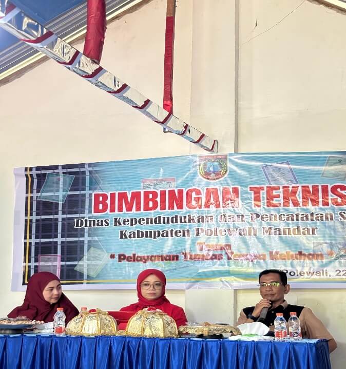 Polman – Dinas Kependudukan dan Pencatatan Sipil (Disdukcapil) Provinsi Sulawesi Barat (Sulbar) menghadiri kegiatan Bimbingan Teknis (Bimtek) Disdukcapil Kabupaten Polewali Mandar (Polman), yang dilaksanakan di Aula Telaga Bidadari, Desa Batetangnga, Kecamatan Binuang, Polman, Sulbar, pada Jumat, 22 Agustus 2025.