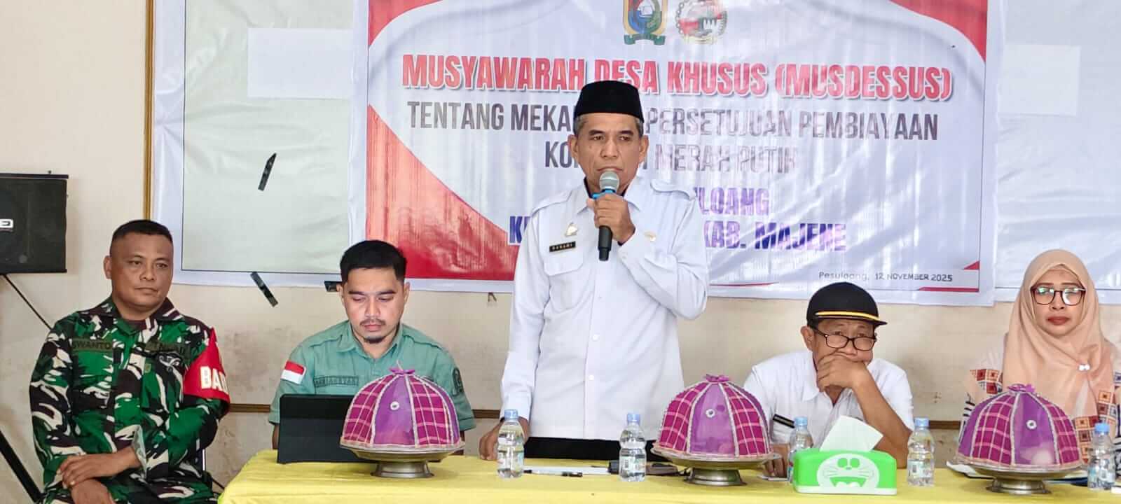 “Musdes Khusus dan membahas tentang mekanisme persetujuan pembiayaan Kopdes Merah Putih Pesuloang, menjadi salah satu rangkaiannya,” ungkap Pj Kepala Desa Pesuloang.