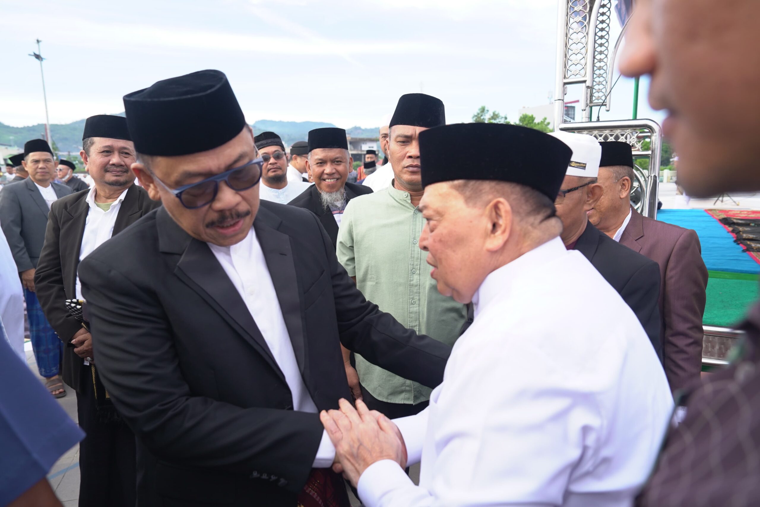MAMUJU – Gubernur Sulawesi Barat, Suhardi Duka (SDK) bersama Wakil Gubernur Sulawesi Barat Salim S Mengga, serta Forkopimda menjalankan salat Idul Adha 1446 Hijriah di Anjungan Pantai Manakarra, Mamuju, Jumat, 6 Juni 2025.