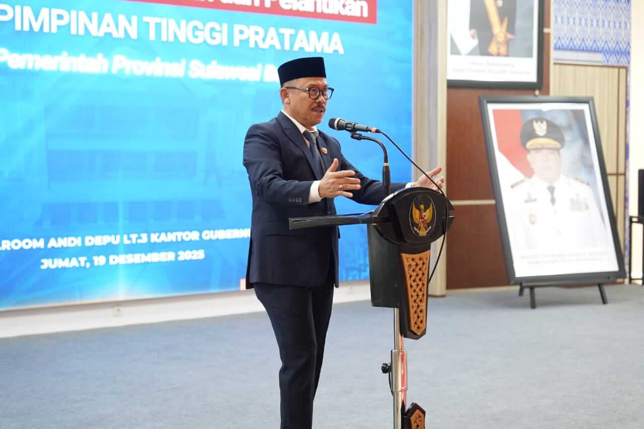 Mamuju– Gubernur Sulbar, Suhardi Duka (SDK) resmi melantik dan mengambil sumpah 10 Pejabat Pimpinan Tinggi Pratama lingkup Pemerintah Provinsi Sulawesi Barat. Pelantikan digelar di Ballroom Kantor Gubernur Sulbar, Jumat, 19 Desember 2025.