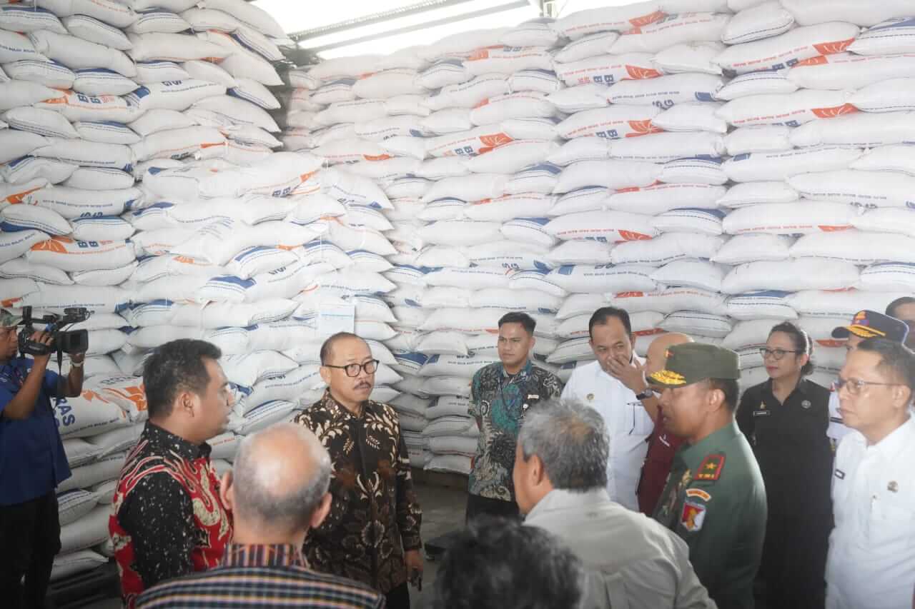 Dalam peninjauan tersebut, Gubernur Suhardi Duka didampingi unsur Forum Koordinasi Pimpinan Daerah (Forkopimda) Sulbar. Rombongan secara langsung memasuki gudang logistik Bulog Mamuju untuk memastikan kesiapan stok, khususnya beras sebagai komoditas utama masyarakat.