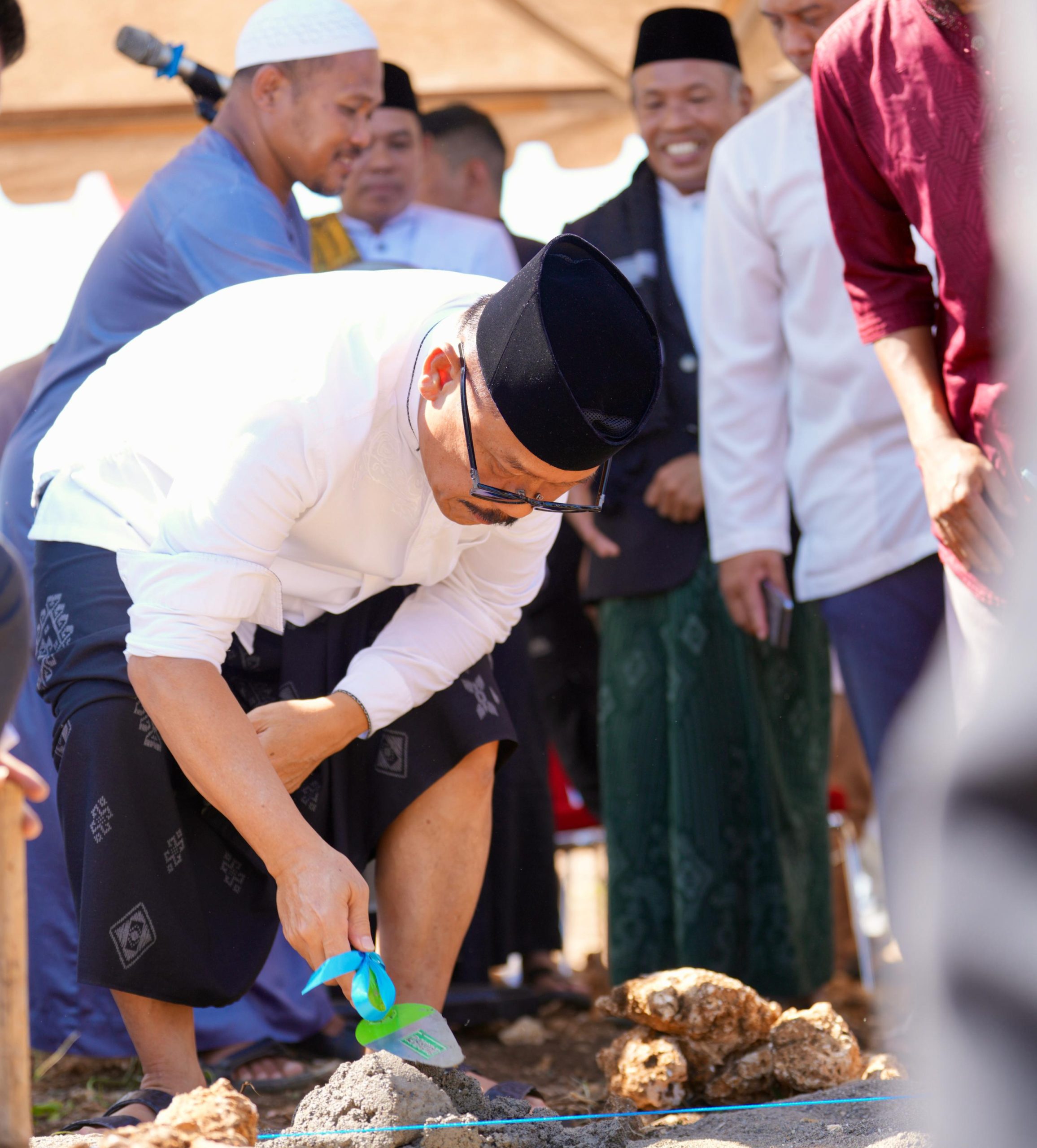 Mamuju – Gubernur Sulbar, Suhardi Duka bersama Bupati Mamuju Sitti Sutinah Suhardi melakukan peletakan batu pertama pembangunan Masjid An-Nur Tanete Guru, Lingkungan Danga Kelurahan Binanga, Mamuju dirangkaikan peringatan Isra’ Mi’raj Nabi Muhammad SAW Jumat, 16 Januari 2026.
