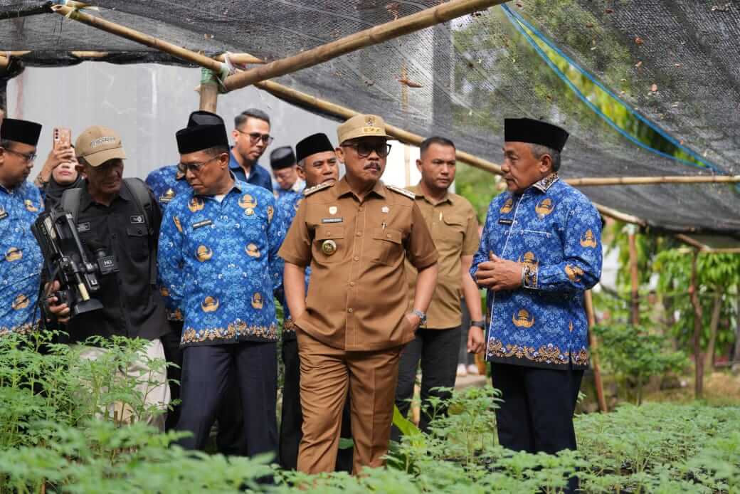 MAMUJU – Gubernur Sulbar Suhardi Duka meninjau pembibitan komoditas pangan oleh Dinas Ketapang di samping kantornya, Senin 17 November 2025.