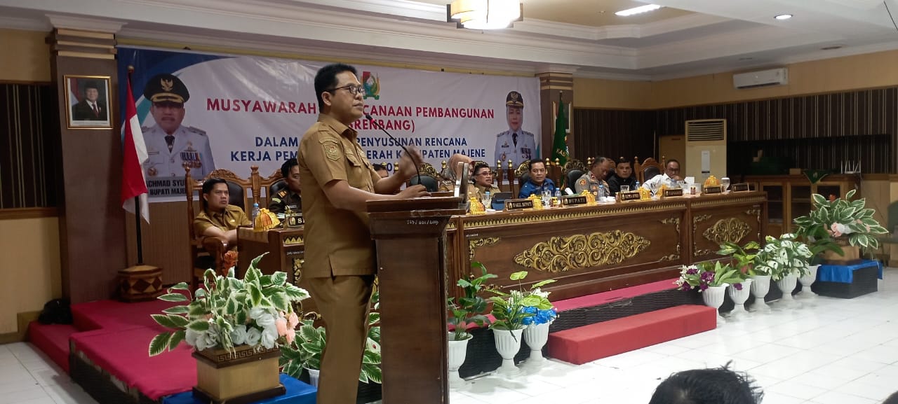 MAJENE- Forum musyawarah Rencana Pembangunan Daerah (Musrenbang) Rencana Kerja Pemerintah Daerah (RKPD) Tahun 2026, Kepala Bidan Anggaran (Kabid) Hasri S.Kom bicara mengenai Layanan Informasi Kesesuaian Hibah dan Bantuan Sosial (Link Hibansos) Kabupaten Majene, Senin 28 April 2025 lalu.