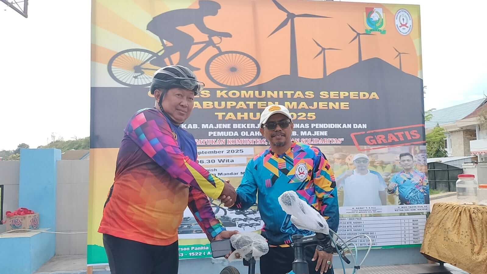 MAJENE – Kepala Disdikpora, Andi Asraf Tammalele melepas “Gowes Komunitas Sepeda” digelar oleh Ikatan Sport Sepeda Indonesia (ISSI) Majene, Sabtu 27 September 2025.