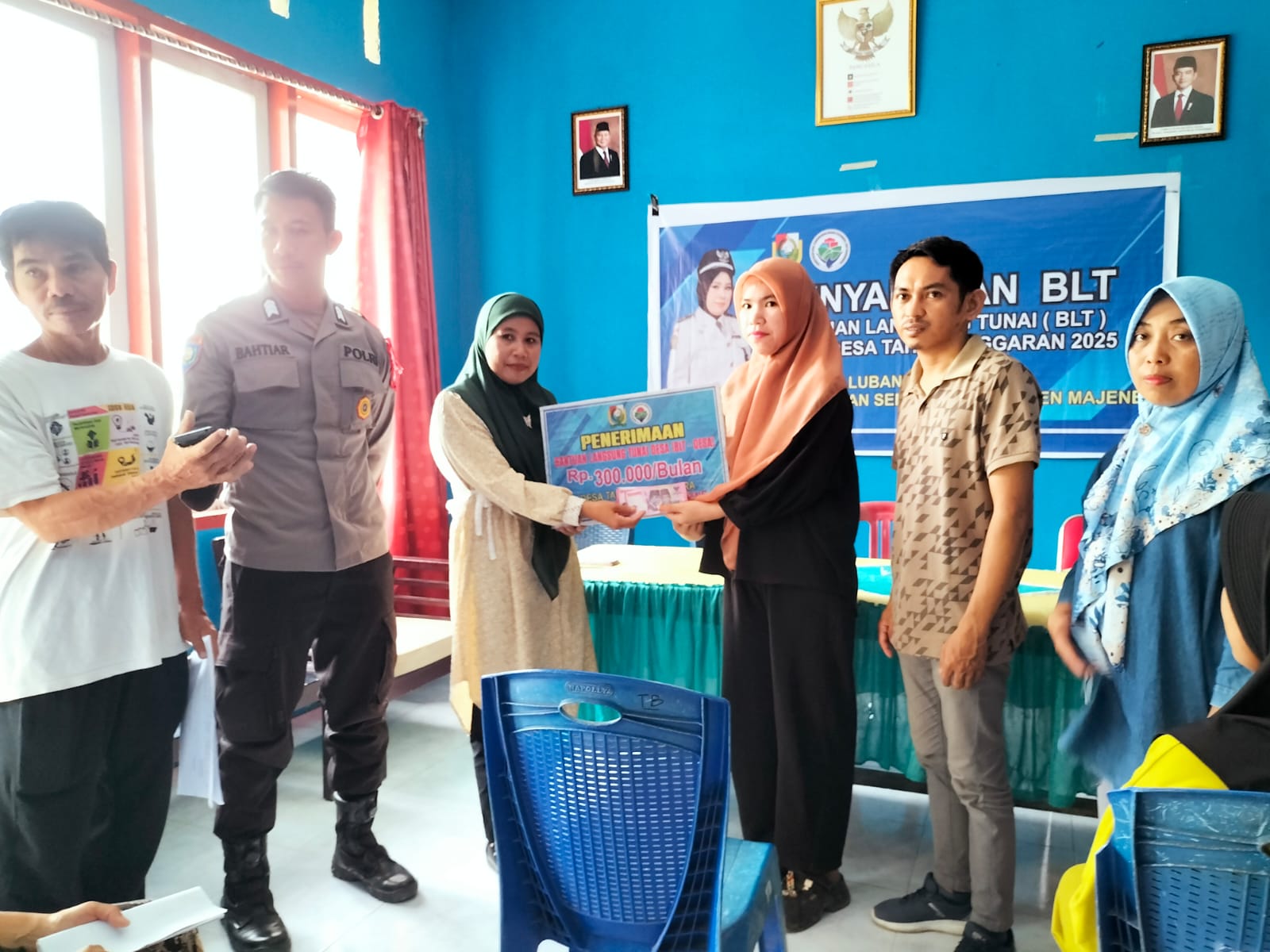 Penjabat (Pj) Tallu Banua Utara (TBU) dalam penyaluran Bantuan Langsung Tunai (BLT) Dana Desa (DD) tahun 2025, didampingi aparat Desa bersama Binmas, Jumat 28 Maret 2025.
