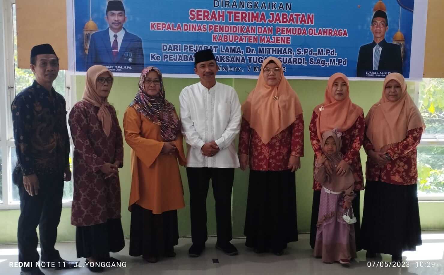 Serah terima jabatan ini terjadi setelah Dr Mithhar Thala Ali dilantik menjadi Kepala Dinas Pendidikan dan Kebudayaan Provinsi Sulbar hasil lelang jabatan beberapa waktu lalu. Maka, untuk mengisi kekosongan jabatan Kadisdikpora Majene, Bupati Andi Achmad Syukri telah menunjuk Sekretatis Dinas Suardi, S. Ag., M. Pd sebagai Pelaksana Tugas (Plt).