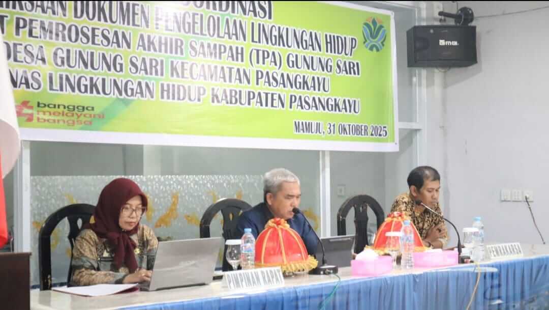 Mamuju — Dinas Lingkungan Hidup (DLH) Provinsi Sulawesi Barat (Sulbar) menggelar Rapat Koordinasi (Rakor) Pemeriksaan Dokumen Pengelolaan Lingkungan Hidup (DPLH) untuk Tempat Pemrosesan Akhir (TPA) Sampah di Desa Gunung Sari, Kabupaten Pasangkayu.