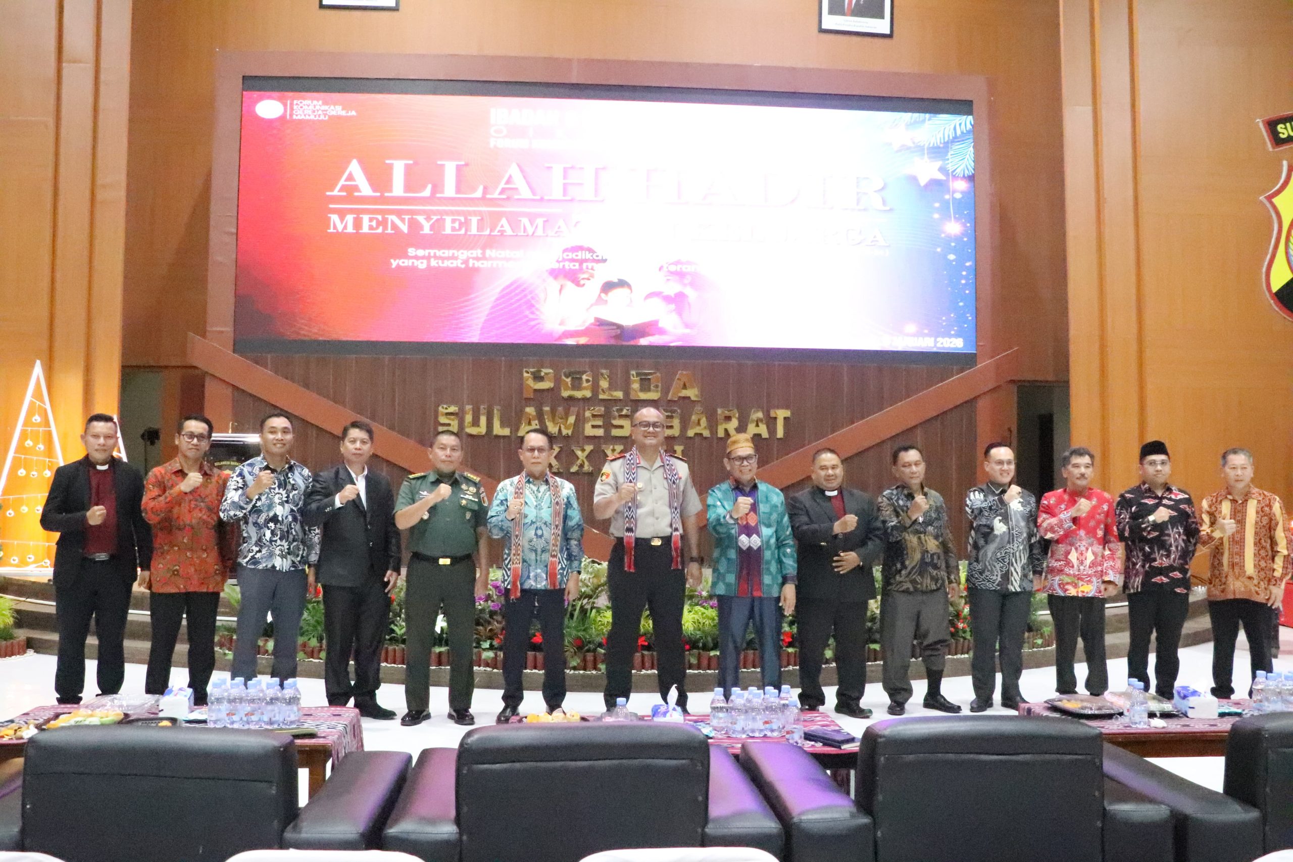 Kegiatan tersebut berlangsung khidmat di Aula Marannu, Polda Sulawesi Barat, dan dihadiri oleh unsur Forkopimda, tokoh agama, serta jemaat dari berbagai denominasi gereja di Kabupaten Mamuju.