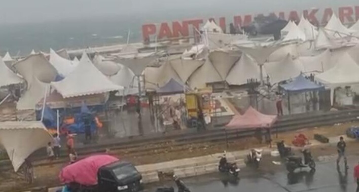 Tenda dan panggung kegiatan Mamuju Festival di Anjungan Manakarra Mamuju rusak dan roboh akibat terpaan angin kencang.