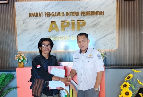 MAJENE – Koordinator Aliansi Pemuda Desa (APD) Majene, M. Gilang Ramadhan sambangi Inspektorat Majene. Dalam kunjungannya langsung diterima pihak Inspektorat, Arfan Hizbullah, Kamis 2 Oktober.