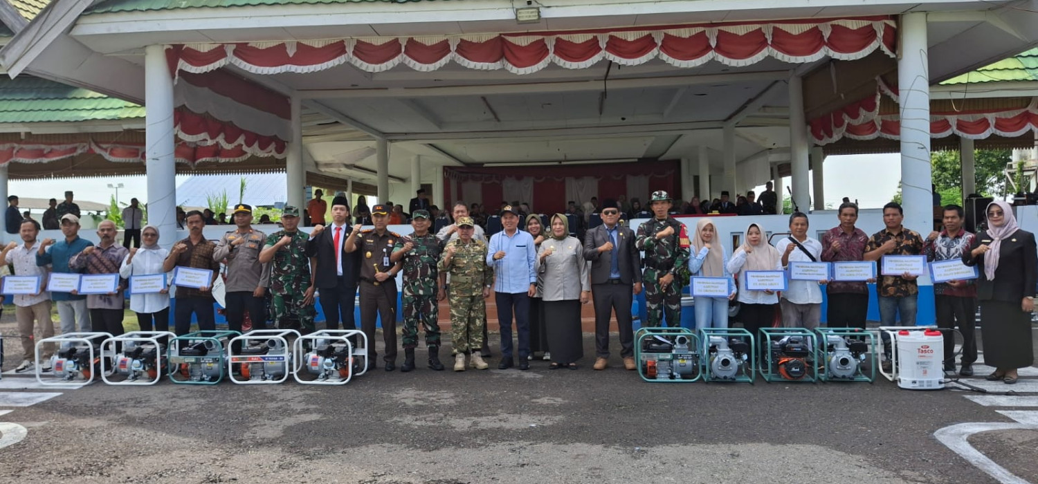 Adapun bantuan diserahkan antara lain 10 ton benih bawang merah, 2 unit irigasi bertekanan, 53 unit pompa air dan 2 unit traktor roda dua.