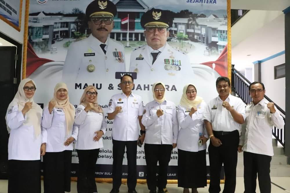 Rombongan Sekda Sulbar disambut langsung oleh Kepala Dinas Sosial, P3A dan PMD Sulbar, Darmawati, didampingi jajaran pejabat struktural dan staf di lingkungan dinas.